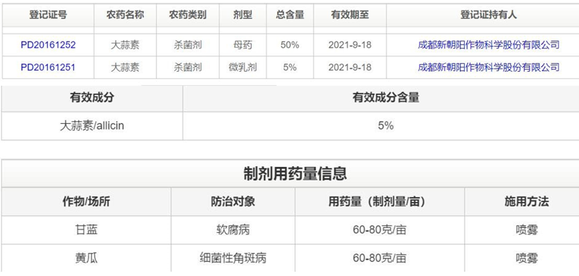 圖 農藥信息網(wǎng)大蒜素登記信息