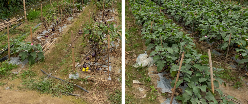 針對茄子青枯病田間試驗結果表明,末次灌根處理8d后,2%春雷霉素稀釋800倍液+5%大蒜素稀釋800倍液平均防效能夠達92.05%,施藥區域正常坐果,生長(cháng)狀態(tài)良好。