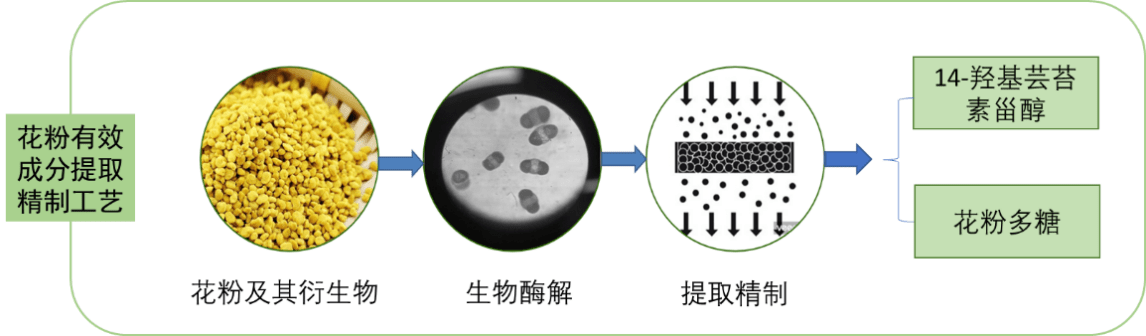 花粉多糖是以花粉為原料,分離得到水溶性花粉提取物。在提取過(guò)程中,引入了纖維素酶解破壁技術(shù),并配合一定程度的機械攪拌,在較為溫和的條件下破除油菜花粉壁,能夠最大程度的釋放花粉中花粉多糖等有效成分,實(shí)現花粉資源的高效利用。
